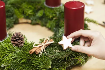 Líka er fallegt að hafa greinakrans með skrauti á útidyrahurðinni þar sem hann tekur hlýlega á móti gestum yfir hátíðarnar.