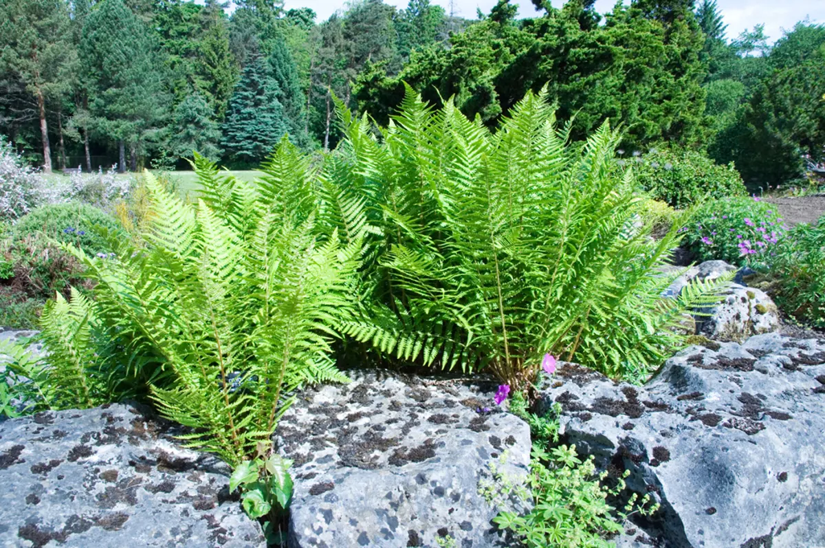Burknar þrífar vel sem undirgróður í beðum með hávöxnum trjám.