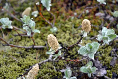 Loðvíðir (Salix lanata). Allt frá því að vera jarðlægur og upp í 1,5 til 2 metrar á hæð. Blómstrar snemma á vorin, karlreklarnir með skærgulum og áberandi frjóhirslum. Blöðin loðin á efra og neðra borði. Harðgerður, vind- og seltuþolinn. Inúítar notuðu loðvíði til að lina tannverk, stöðva blæðingar og lina niðurgang.