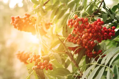 Reyniviður (Sorbus aucuparia). Ýmist einstofna eða margstofna tré, allt að 15 metra hátt með sléttum berki. Þrífst best í frjóum jarðvegi og ekki of rökum eða þéttum. Blöðin fjöðruð og fá rauðan haustlit. Blómgast hvítum blómum í júní og fær falleg rauð ber á haustin. Þolir ágætlega skugga en er viðkvæmur fyrir reyniátu. Varast ber að gras nái að vaxa að stofni ungra plantna vegna þess að slíkt truflar vöxt þeirra og getur valdið rótarhálsfúa. Verður 60 til140 ára. Berin þóttu góð við þvagblöðrusteini og saft af þeim er sögð þvaglosandi og hægðadrífandi.