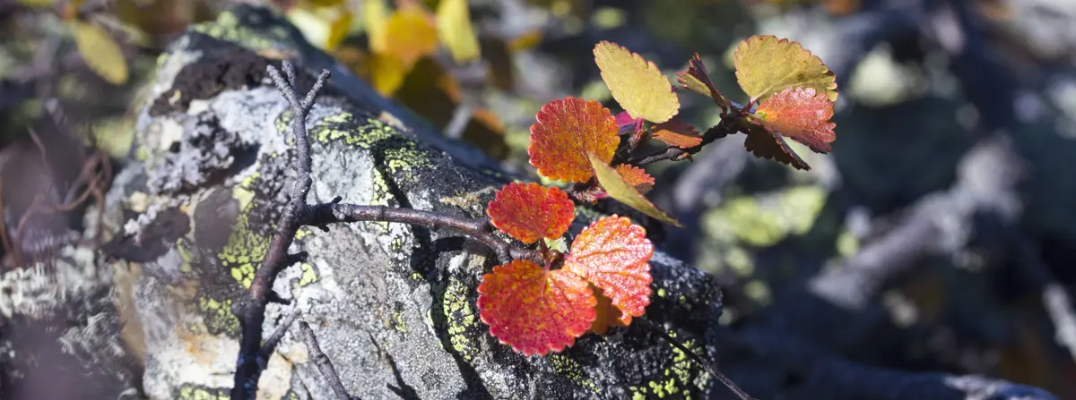 Fjalldrapi (Betula nana). Algengur um allt um land. Hann líkist smávöxnu birki, enda ættingi þess. Fjalldrapi er hægvaxta, jarðlægur og lágvaxinn runni, 10 til 60 sentímetrar á hæð. Blöðin fá á sig fallegan koparrauðan haustlit. Vex gjarnan í fjallshlíðum eða samfelldum fjalldrapamóum á láglendi og hentar vel í steinhæðir. Harðgerð og nægjusöm planta. Áður fyrr var fjalldrapi notaður sem tróð undir torf í þökum torfbæja því börkur hans fúnar seint og hlífði viðnum undir torfinu. Blendingur af birki og fjalldrapa nefnist skógarviðarbróðir.