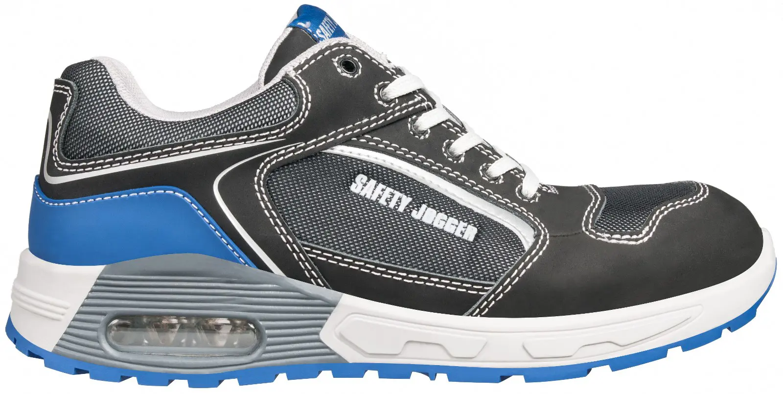 Öndun, Cool max lining, dempun í hæl, olíuþolinn, hálkuvörn, antistatic. Léttur og þægilegur öryggisskór frá Safety Jogger.